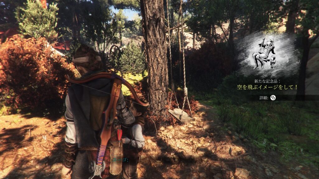 [1-探索]屋敷を出て正面の鳥の像を見た後、道沿いに右に進んで行った先の木で手に入ります。