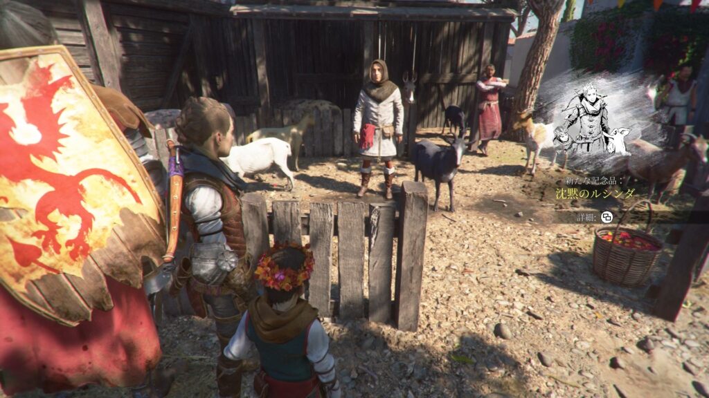 [1-輝ける日々のお祝い]市場の右奥の小道の先にいるヤギに近づくと手に入ります。