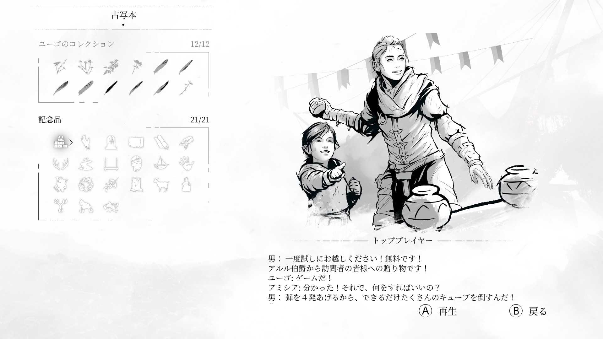 「A Plague Tale: Requiem」のトロフィー・実績「消えない記憶」取得に必要な記念品の場所をまとめました。
