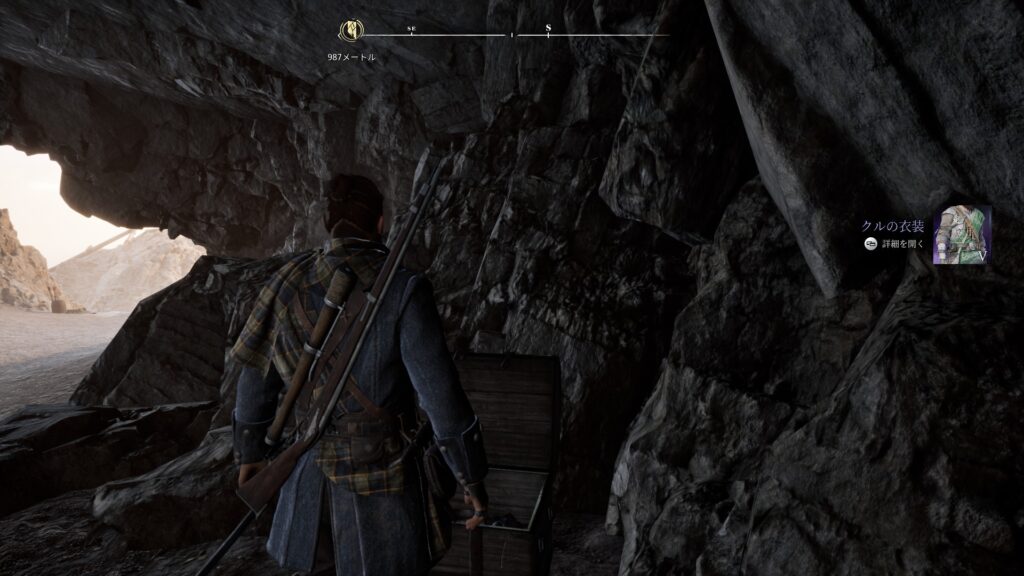 フォート・イェリコまでの道中、鉱山のリフトで昇った先の宝箱から入手できます。