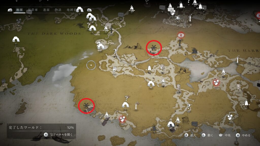 呪われた土地は黒い森に1つ、ハロウズに2つ、喜び山に1つ、全部で4つあります。