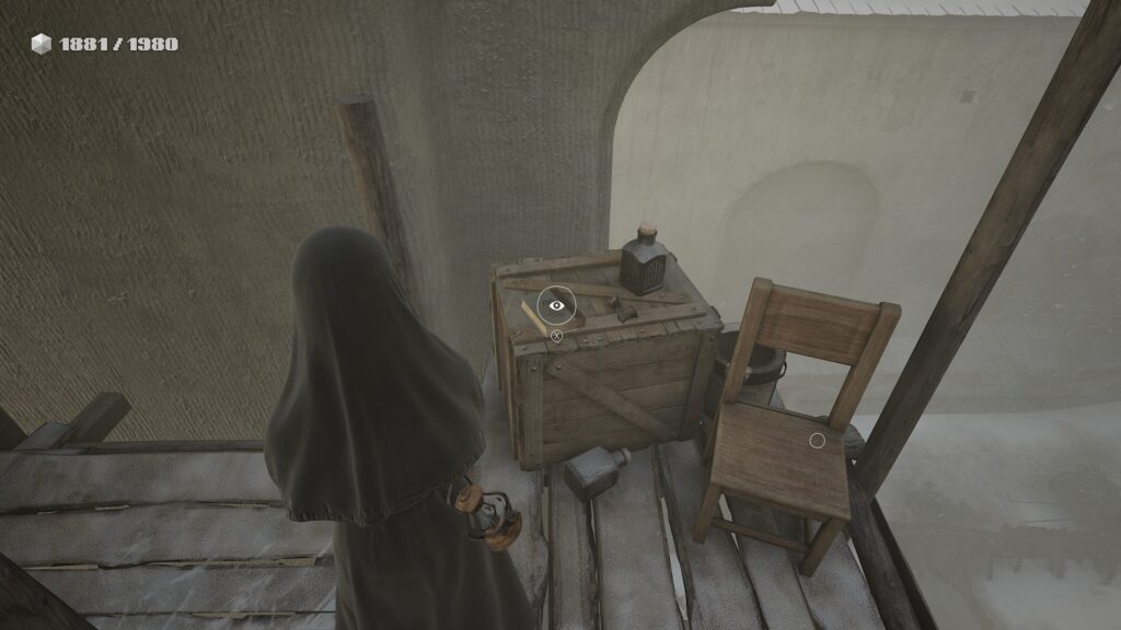 「風車」犬から逃げる道中の小部屋。台を動かして角にある絵の近くに持っていき、台の上に乗って絵に向かって祈りボタンを長押しすると解除されます。