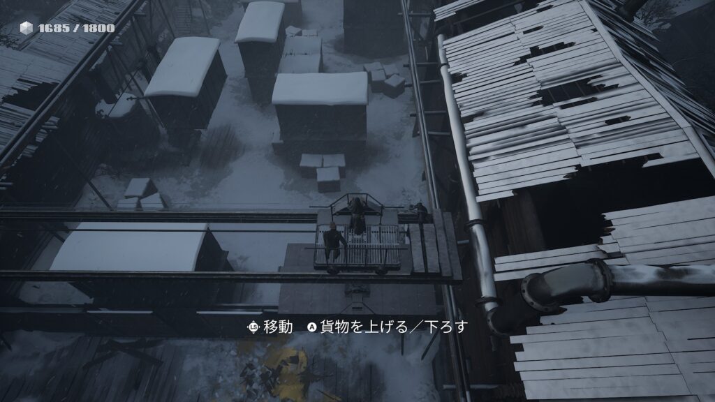 「駅」クレーンで奥まで進んで行くエリアで道中にある木箱すべてをクレーンのコンテナで破壊すると解除されます。