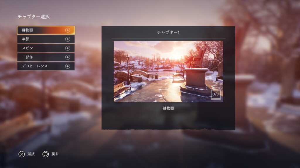 チャプターやシーンをメニューから再度リプレイできるのは、収集などがやり易くて親切だと思います。