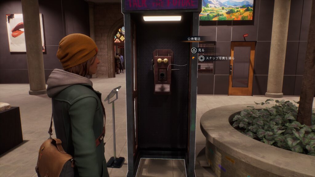 公衆電話:「チャプター2:半影 – 牛の角を掴む」で生きている世界の美術棟にある公衆電話に「未来に声を残す」を行った後、反対側から「過去からの声を聞く」を行う。