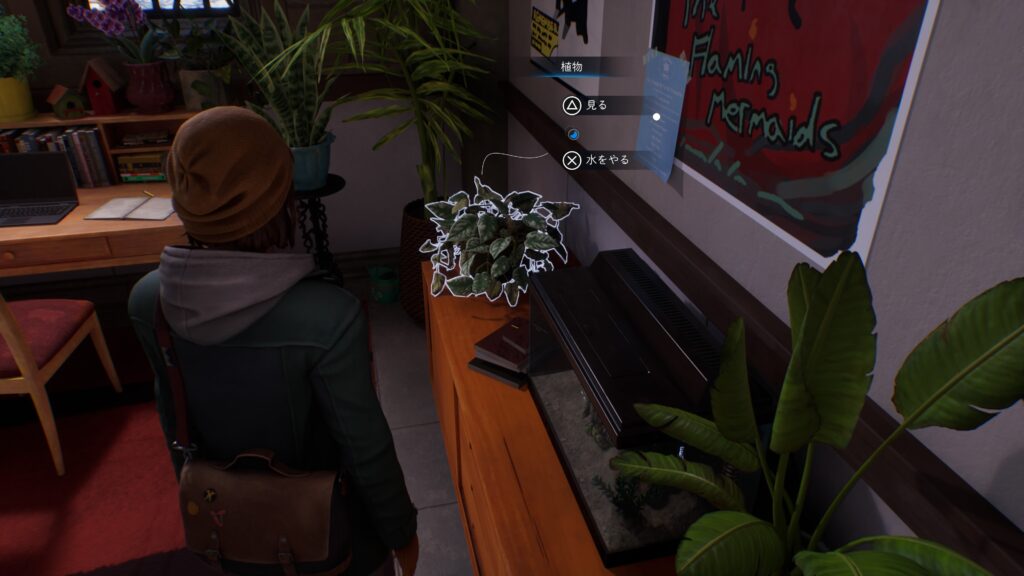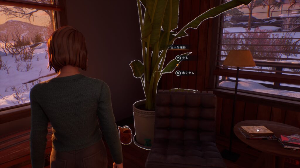 「チャプター2:半影 – 写真判定」で生きている世界の自宅ヘラートンハウスで1階の角にある巨大な植物に水をやる。