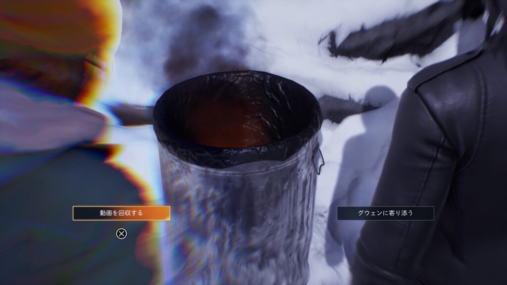 グウェンのUSBメモリ:「チャプター2:半影 – 高台の調査」で高台でのグウェンとの選択で「動画を回収する」を選択する。