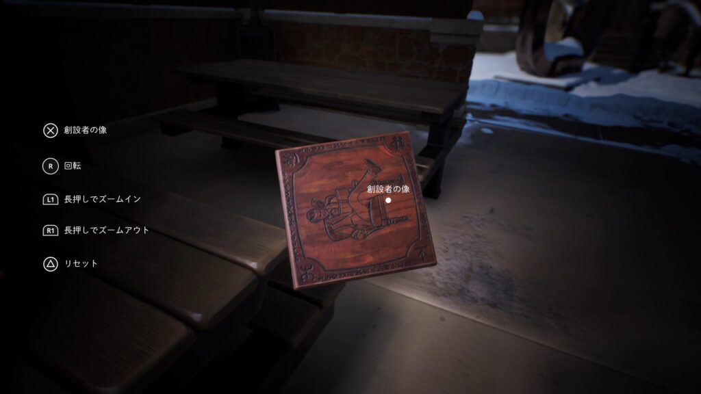 まず、創設者の像を調べて鳥がいないことに気づきます。その後、鳥を調べると鳥のメダルが手に入るので、鳥のメダルを創設者の像に置くとパズルが解けます。