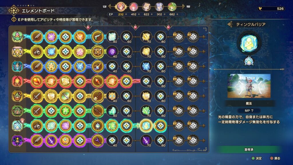 「精霊器」はレベルアップ時やフィールド上にある「精霊石」から手に入る「EP」を利用して「精霊器」の新たな力を得られます。