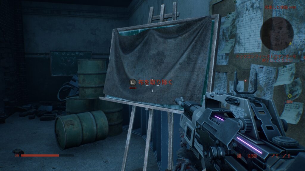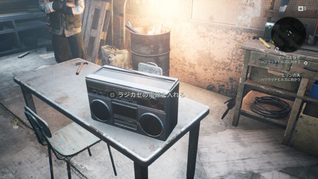 サブクエストクリア後の抵抗軍のシェルターでライアンの近くにラジカセがあるので電源を入れて音量を上げると解除されます。