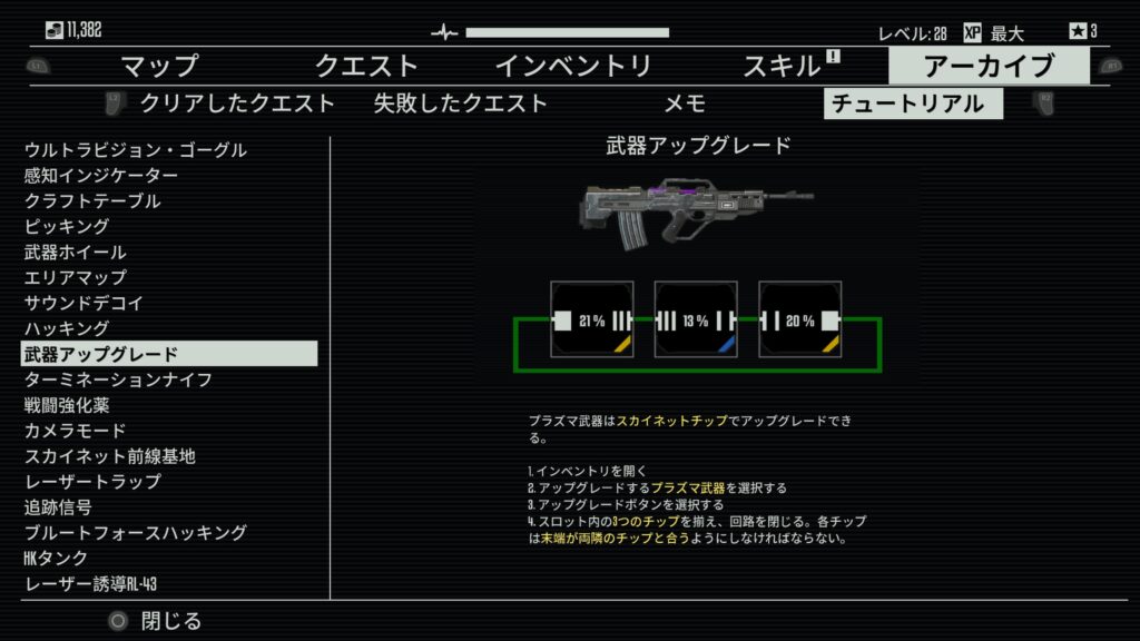 プラズマガン入手後にチップを使用して武器のアップグレードができるようになります。