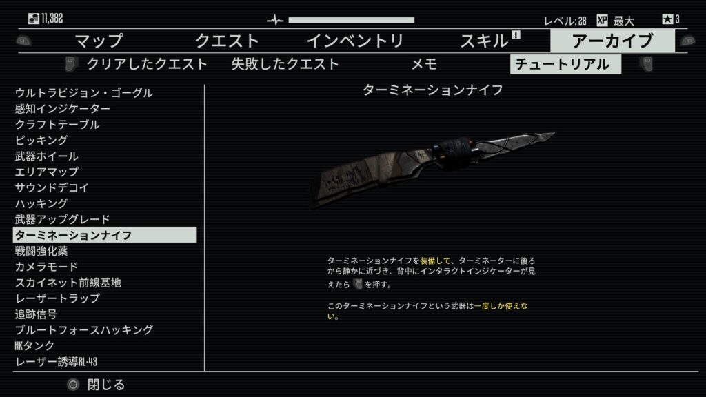 メインクエストを進めるとターミネーションナイフが手に入ります。このターミネーションナイフを使用してターミネーターを背後から攻撃ボタンでステルスキルすると解除されます。