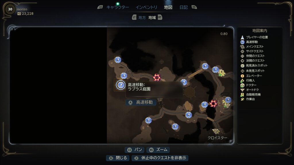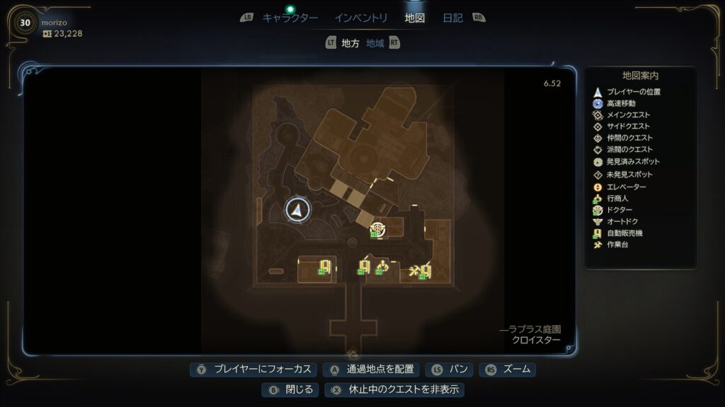 クロイスターの離着陸場を南に進んだ先にあるラプラス庭園内の噴水近くにいる予測大司教レスリー・ペケットに話しかけるとサブクエストが発生します。