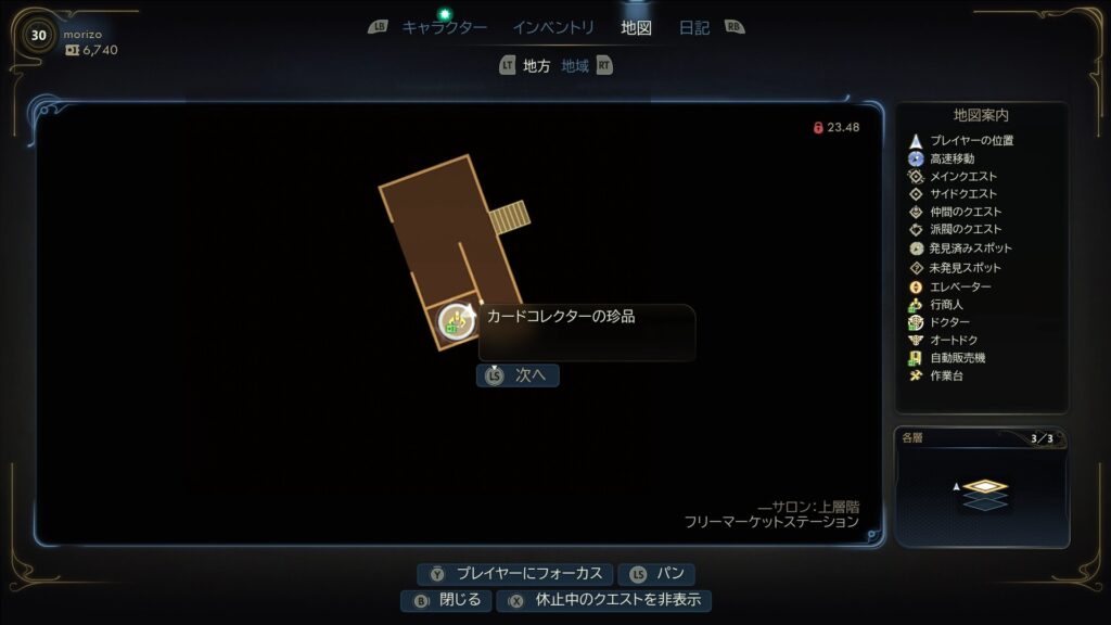 「桁違いな改善」はプラエトルのロボット製造施設を訪れるとクエスト開始され、「たぐいまれな検体」はACS無争債権号の付加価値遊歩道の駅ホームで配達員からカートリッジを受け取るとクエストが進みます。